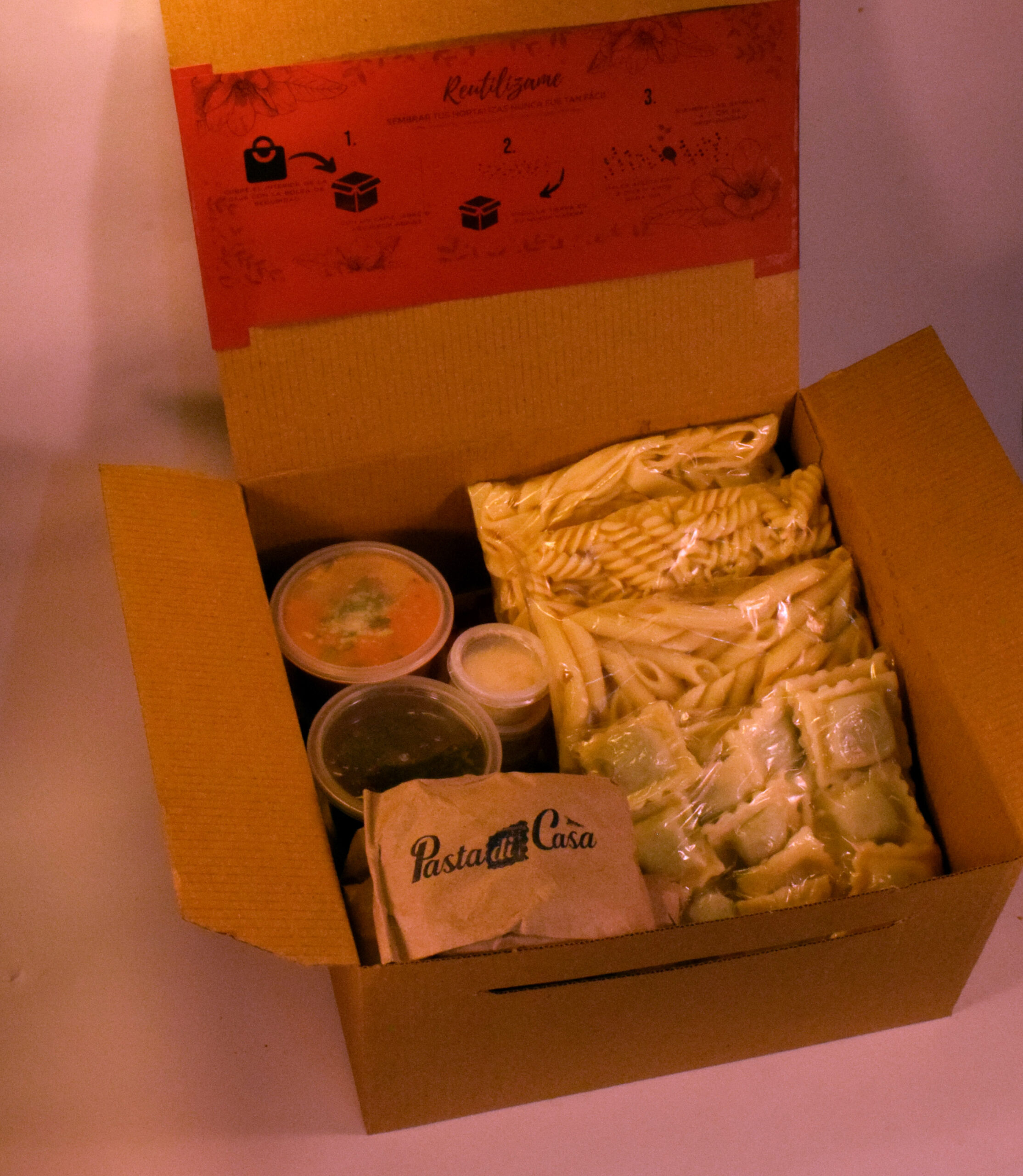 Escoge el relleno de tus ravioli y tu salsa, lo podras cocinar en tu casa en 5 minutos, incluye queso parmesano y pan.